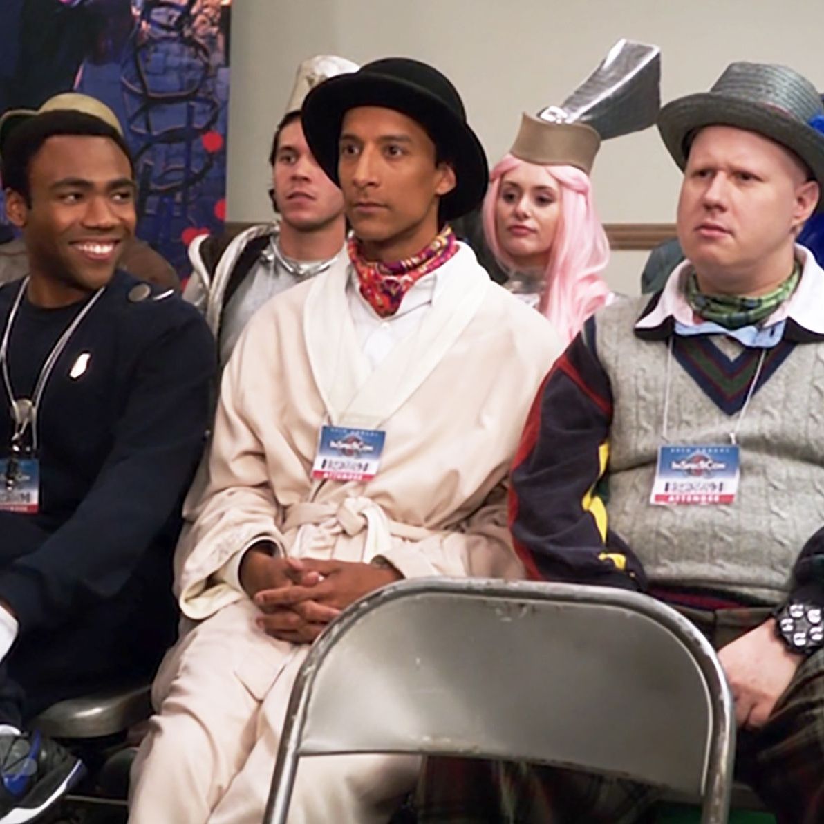 von Jannah FischerNa, erkannt? Zwischen Donald Glover (l.) und Danny Pudi sitzt "Golden Girls"-Star Betty White.