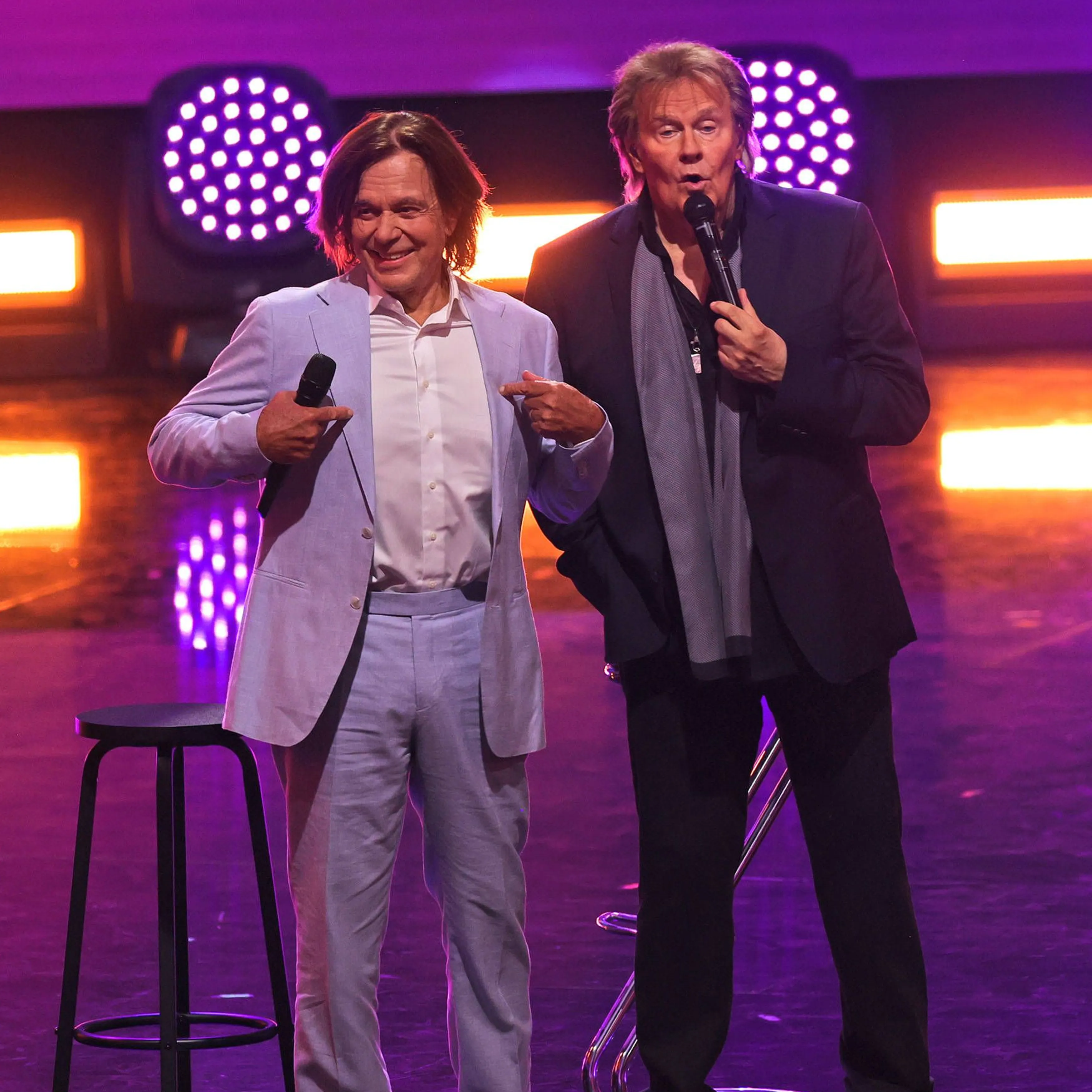 von teleschauBei "Die Giovanni Zarrella Show" stehen die Schlager-Stars Howard Carpendale (r.) und Jürgen Drews gemeinsam auf der Bühne.