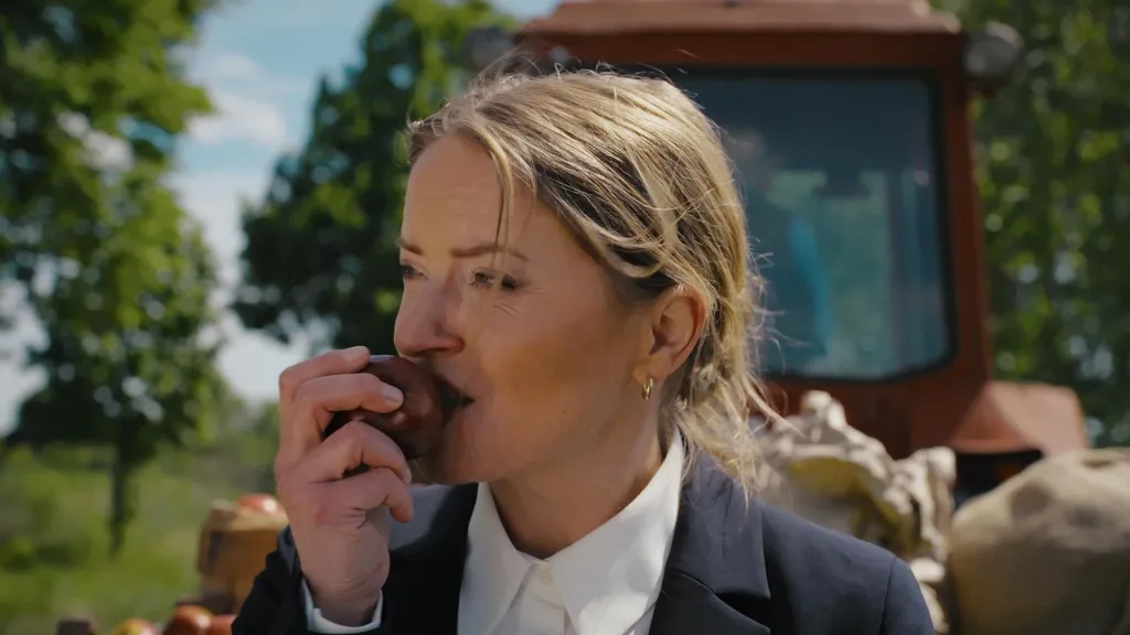 Maja (Carlotta Truman) kommt überraschend auf den Apfelhof. Sie trifft dort auf Georg. Dieser ist aber total überrumpelt und fragt sie zunächst, ob sie sich verirrt hat.