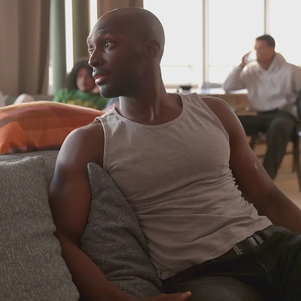 Ibo bringt jede Menge Model-Erfahrung und Selbstbewusstsein mit zu GNTM. Auf dem Catwalk überzeugt er mit schwarzem Tanktop und zeigt gleichzeitig, wie trainiert er ist.