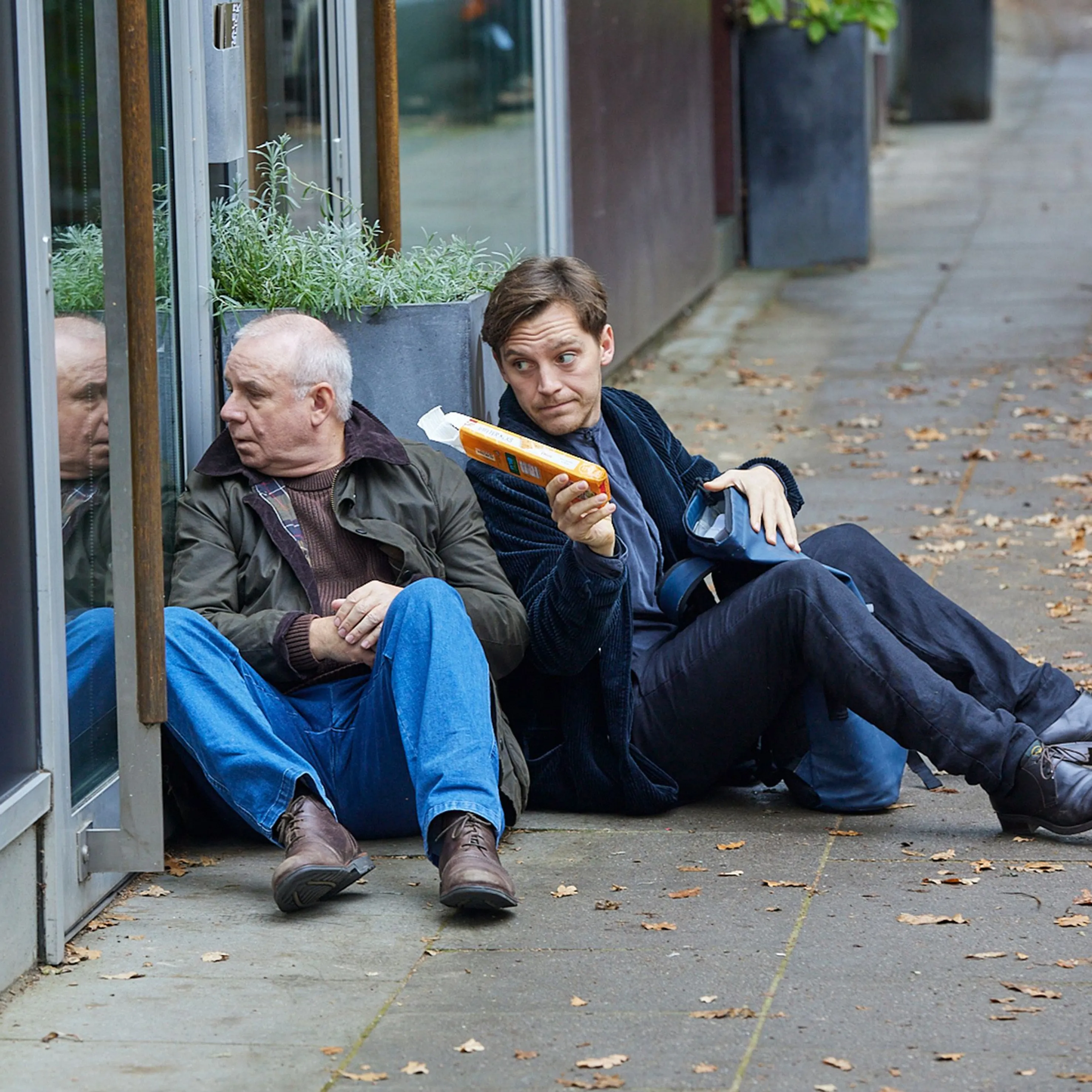 von teleschauDas ungleiche Duo Alfred (Joachim Król, l.) und Denis (Jonas Nay, r.) findet in "Die Frau in Blau" über einen tragischen Unfall zusammen.