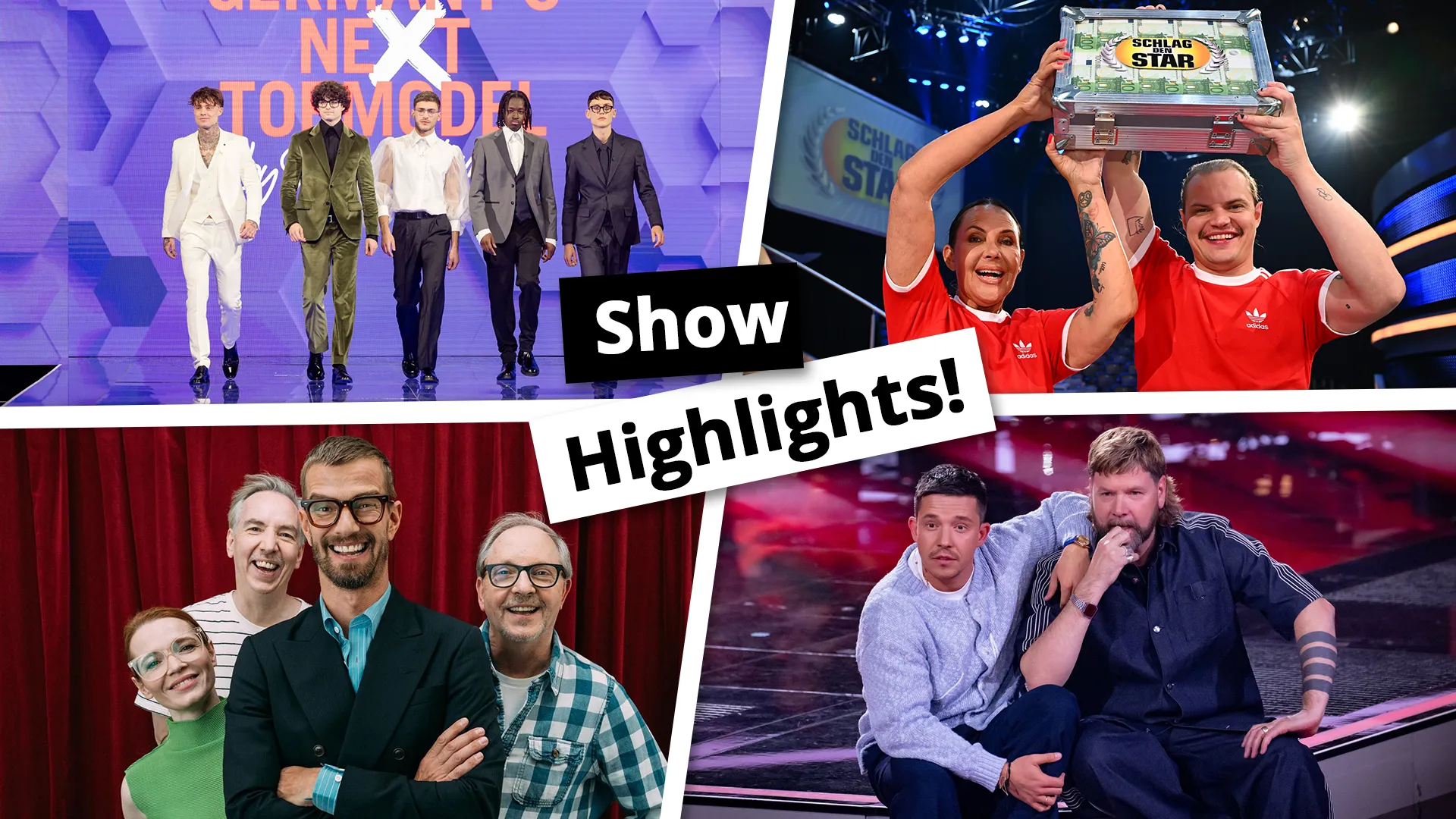 "Die besten Comedians Deutschlands", "TV total Stand-up Club", "Paul Panzer live 'MIDLIFE CRISIS... willkommen auf der dunklen Seite'"