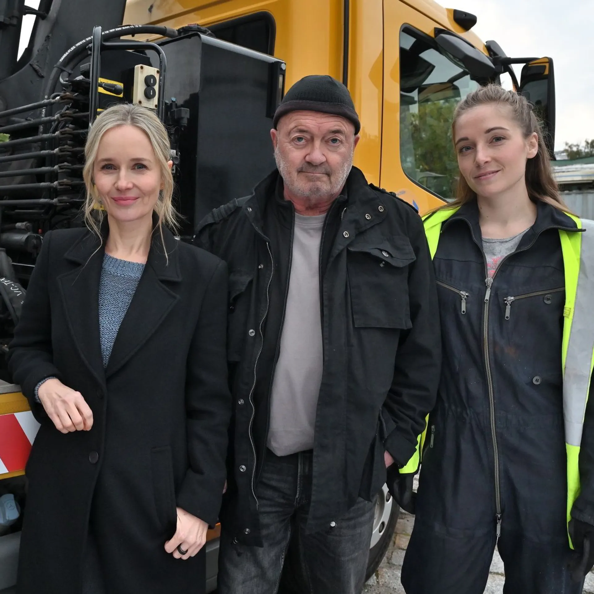 von teleschau - teleschau - der mediendienstHartes Geschäft in einer Männerdomäne: Jana Hellwig (Rosa Falkenhagen, r.) klärt Otto Garber (Florian Martens) und Linett Wachow (Stefanie Stappenbeck, l.) über das Abschleppmilieu auf.
