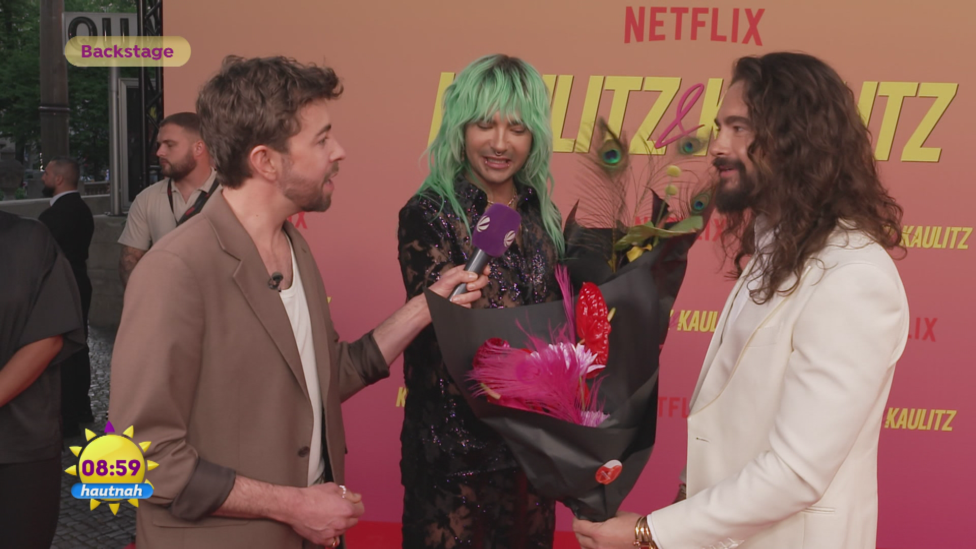Warum bekommen eigentlich fast nur Frauen Blumen geschenkt? Diese Frage stellen sich Bill und Tom Kaulitz - denn sie selbst würden sich auch über Blumen freuen. Reporter Benedikt Amara nimmt das zum Anlass für eine besondere Überraschung.