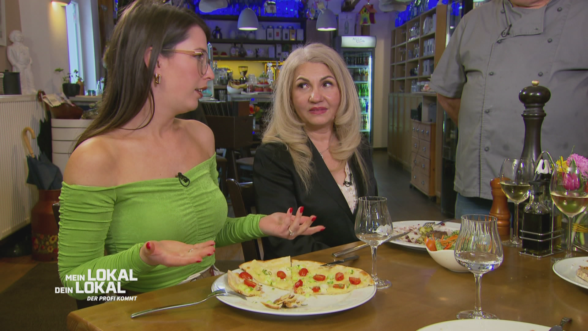 Ab 12KochenRealityDie Hauptspeisen werden serviert. Die Kritikpunkte sind eindeutig mehr als bei den Vorspeisen. Bei einem Gericht fehlt sogar das Brot, das scheint aber kein Problem zu sein.