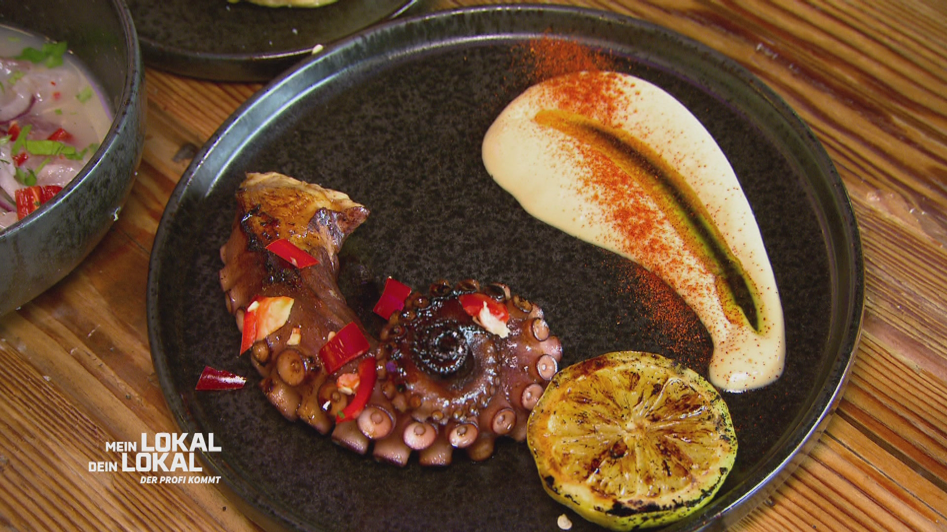 Ab 12KochenRealityDas Testessen für Mike besteht in Eros Lokal aus Tapas: Oktopus mit Aioli, Ceviche und Burger. Mike ist von dem Geschmack begeistert, trotzdem findet er ein paar Kritikpunkte.
