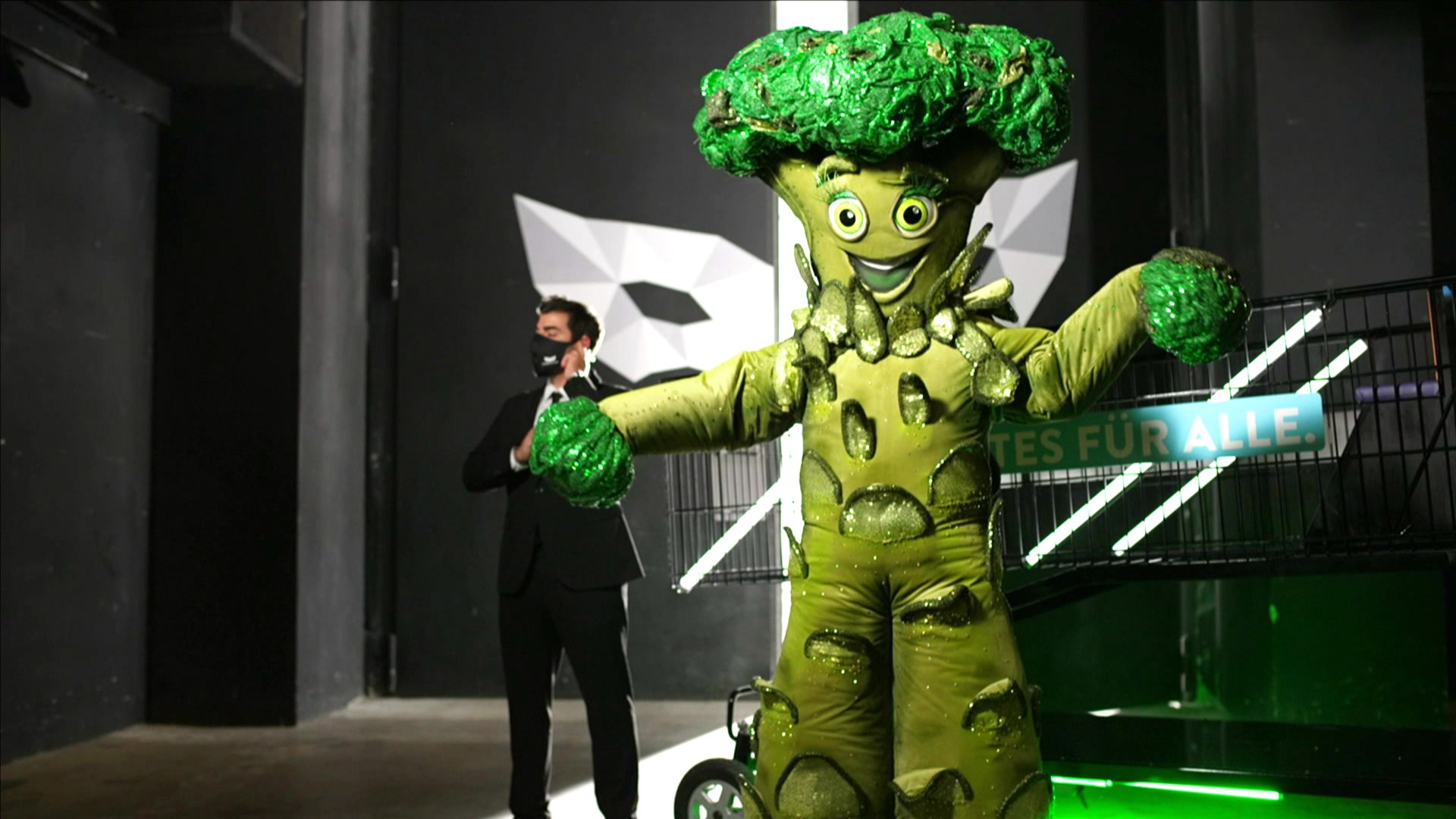 Bei so viel Power und Freshness auf der Bühne wird man fast grün vor Neid! Der Brokkoli sorgt mit einer Performance von P!nks Song "So What" für Begeisterung im Studio. Kommt das Rateteam dem Star hinter der Maske auf die Schliche?