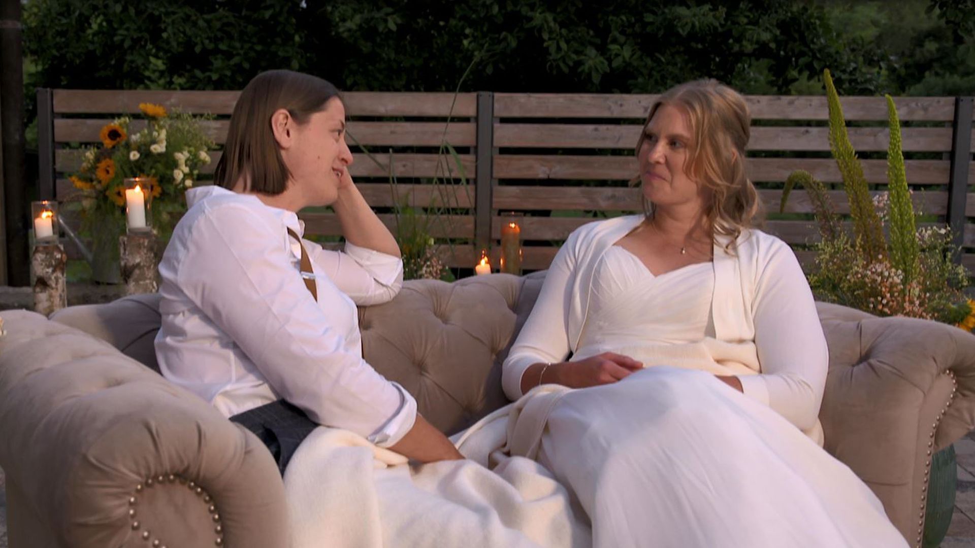 Ab 6RealityRomanzeNach ihrer Trauung führen sowohl Nadine, als auch Christoph ein sehr persönliches Gespräch mit ihren Trauzeugen. Sie lassen die Hochzeit nochmal auf sich wirken und tauschen sich über ihre Eindrücke aus.