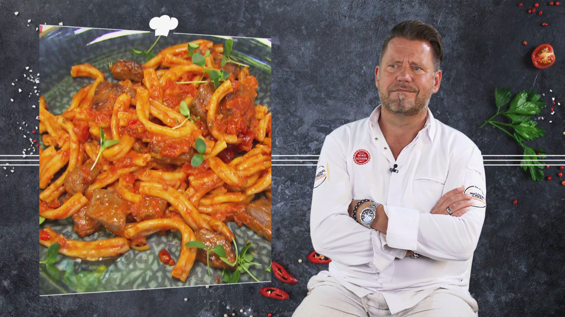 Ab 12KochenRealityMike Süsser ist bei der Zubereitung von hausgemachter Pasta dabei und ist davon sehr begeistert. Er gibt dem Kandidaten noch einen letzten Tipp, für das kommende Testessen von seinen Mitstreitern.