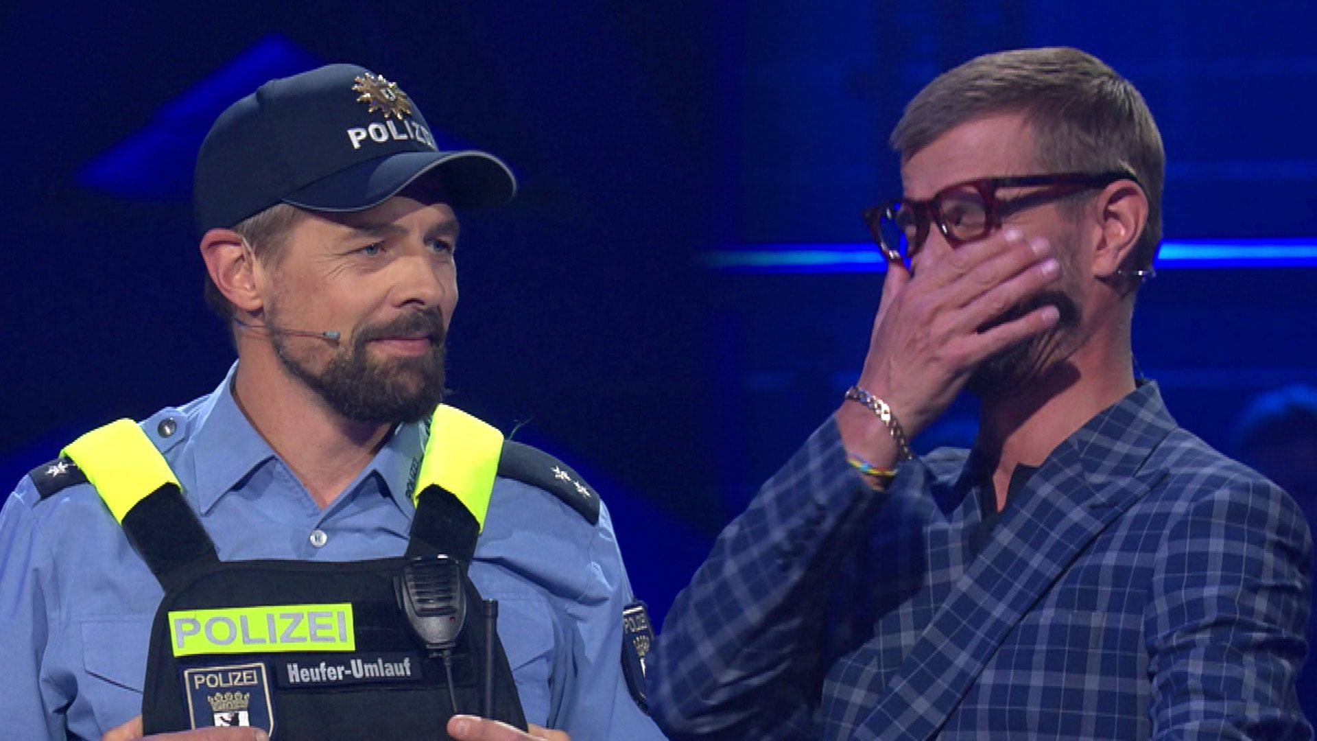 Klaas moderiert das Finale als Polizist