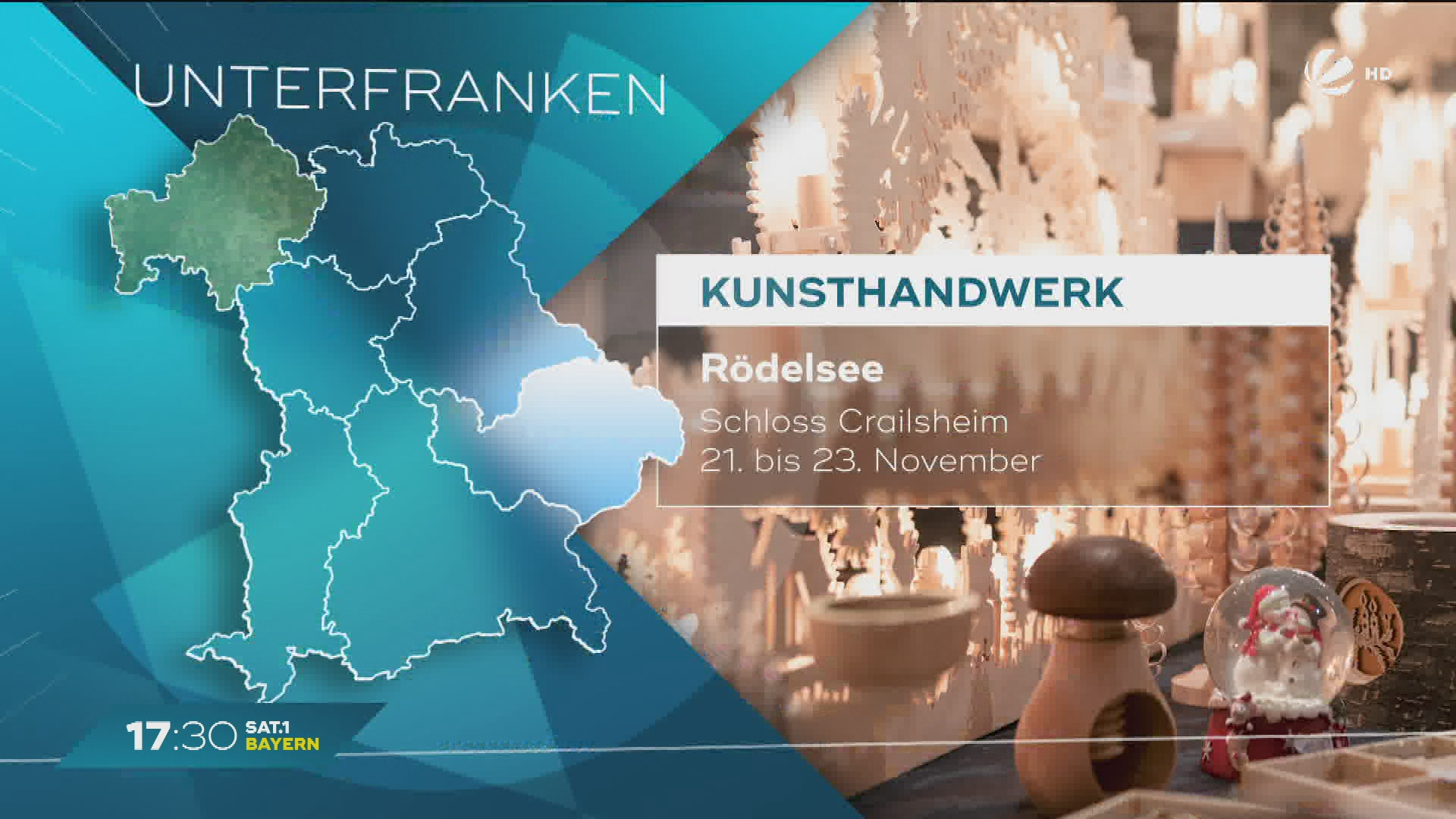 17:30 SAT.1 Bayern - Mein Bayern erleben – Freizeittipps: Kunsthandwerkermarkt bis Winterdorf