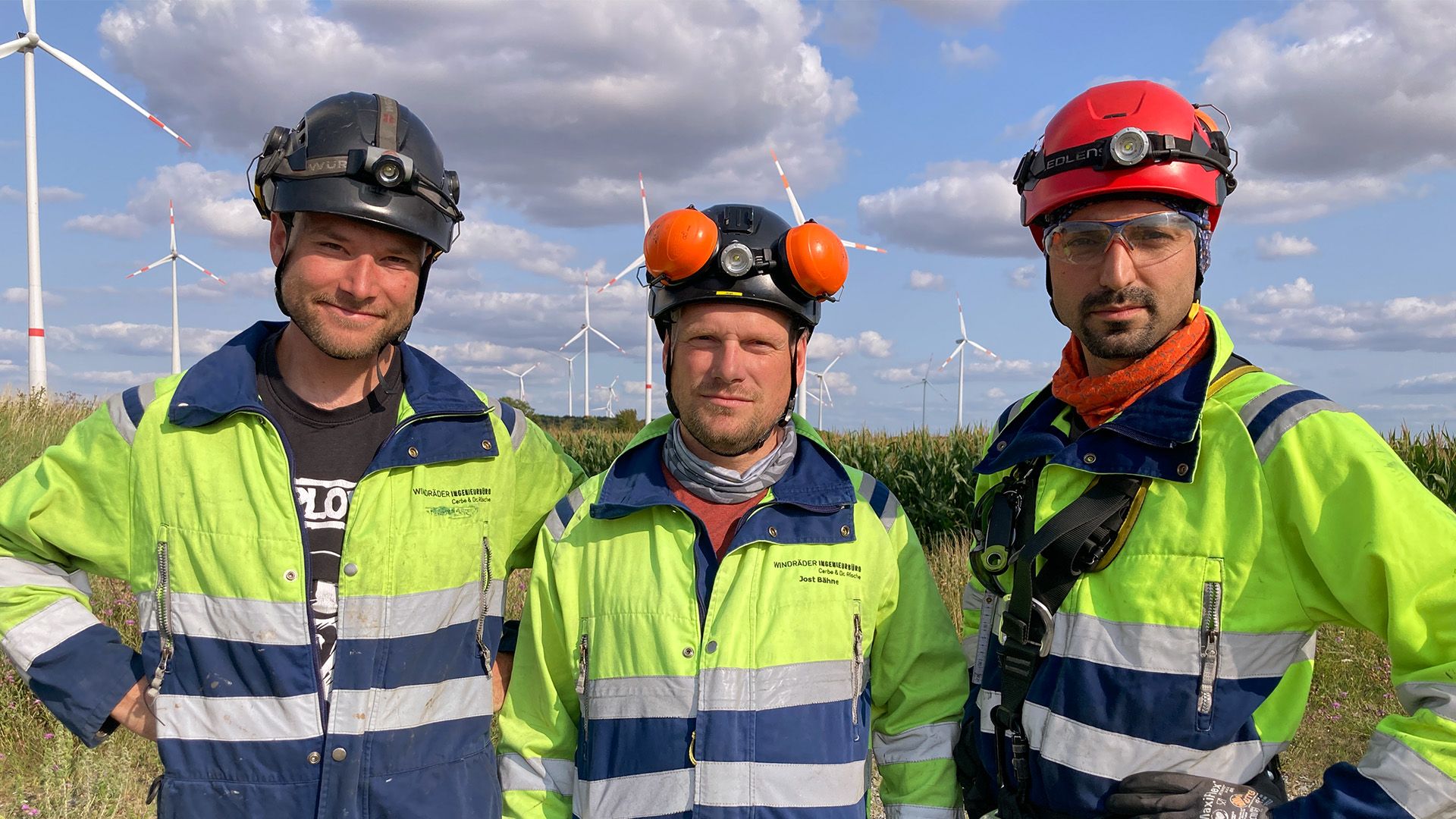 Windpark Hansstedt II bei Uelzen: Die Servicetechniker Tobias Witte, Alexander Welke und Jan-Eric Hesse stehen unter Strom. Sie sollen das Getriebe eines 130 Meter hohen Windrades auswechseln - auch für die erfahrenen Techniker keine alltägliche Aufgabe.