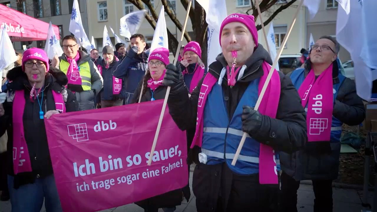 Sieben Prozent mehr Lohn: Das fordert die Deutsche Polizeigewerkschaft mit einer Mahnwache in München und macht auf Unterschiede bei Tarifverträgen aufmerksam. Grund für die Forderungen sind auch steigende Lebensunterhaltungskosten.
