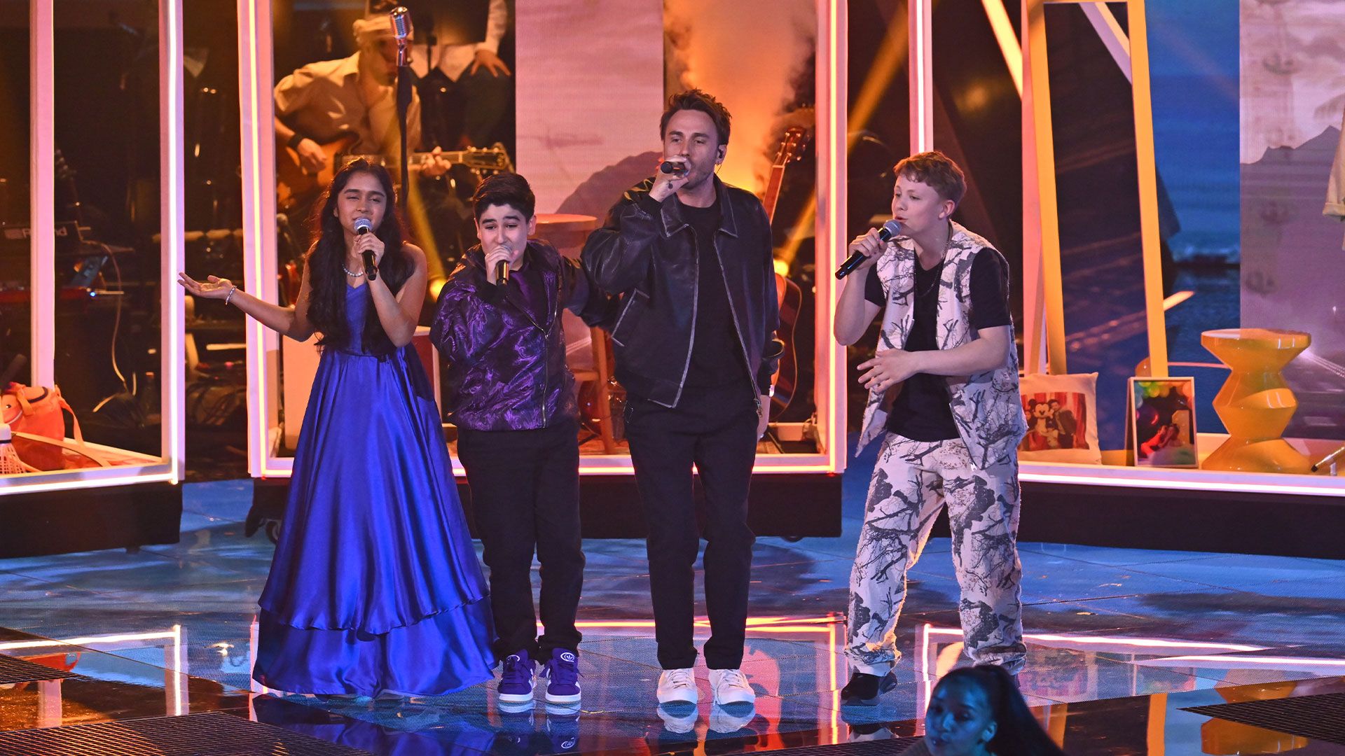 Ab 6Reality-SpielshowMusikDaryan, Sohum und Piet liefern eine mitreißende Show zusammen mit Coach Clueso und seinem Hit "Flugmodus"! Der gemeinsame Auftritt zeigt, wie stark ihr Teamzusammenhalt ist. Ob das Team Clueso zum Sieg verhilft?