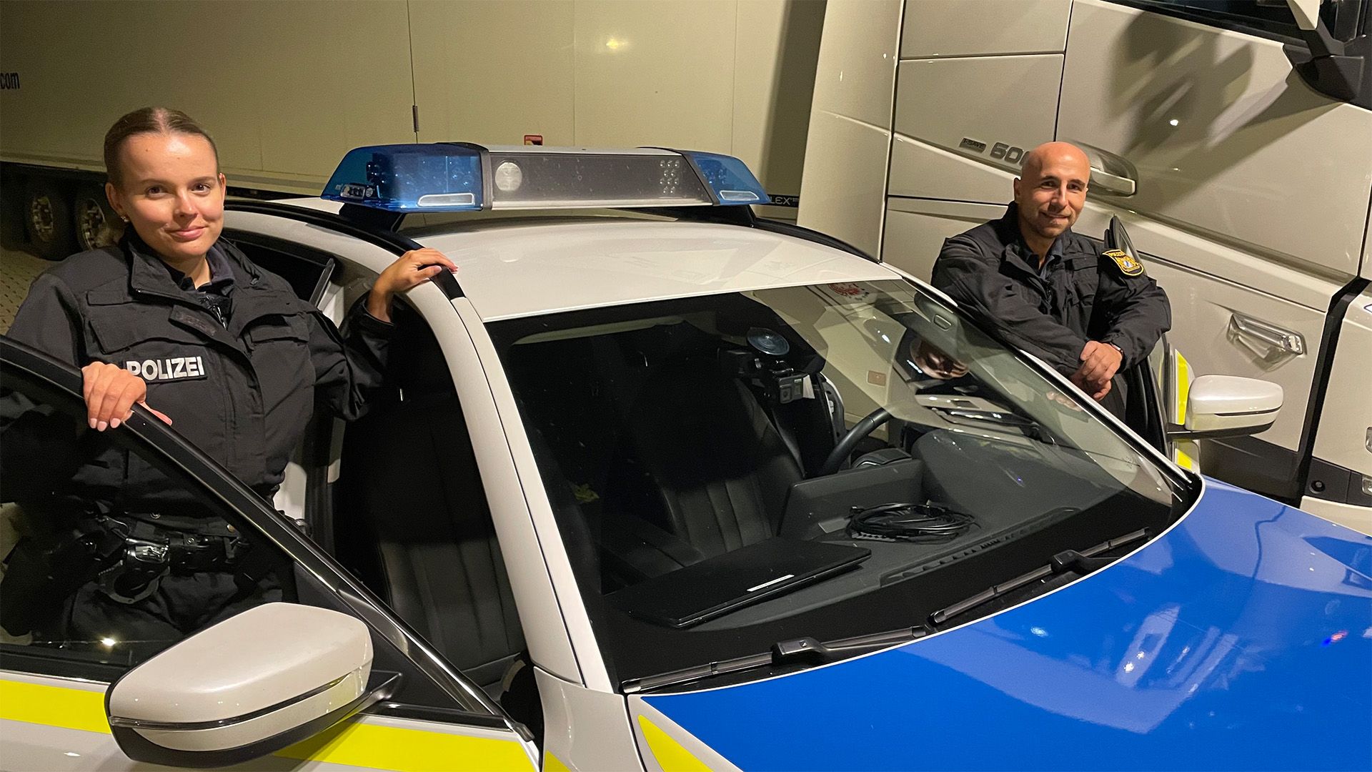 Theresa Weinmann und Josef Maier von der Verkehrspolizei Hohenbrunn sind östlich von München im Einsatz. Die beiden stoppen den LKW einer Spedition, die ihnen schon mehrmals aufgefallen ist, weil bei ihren Fahrzeugen die Ladung nicht richtig gesichert ist.
