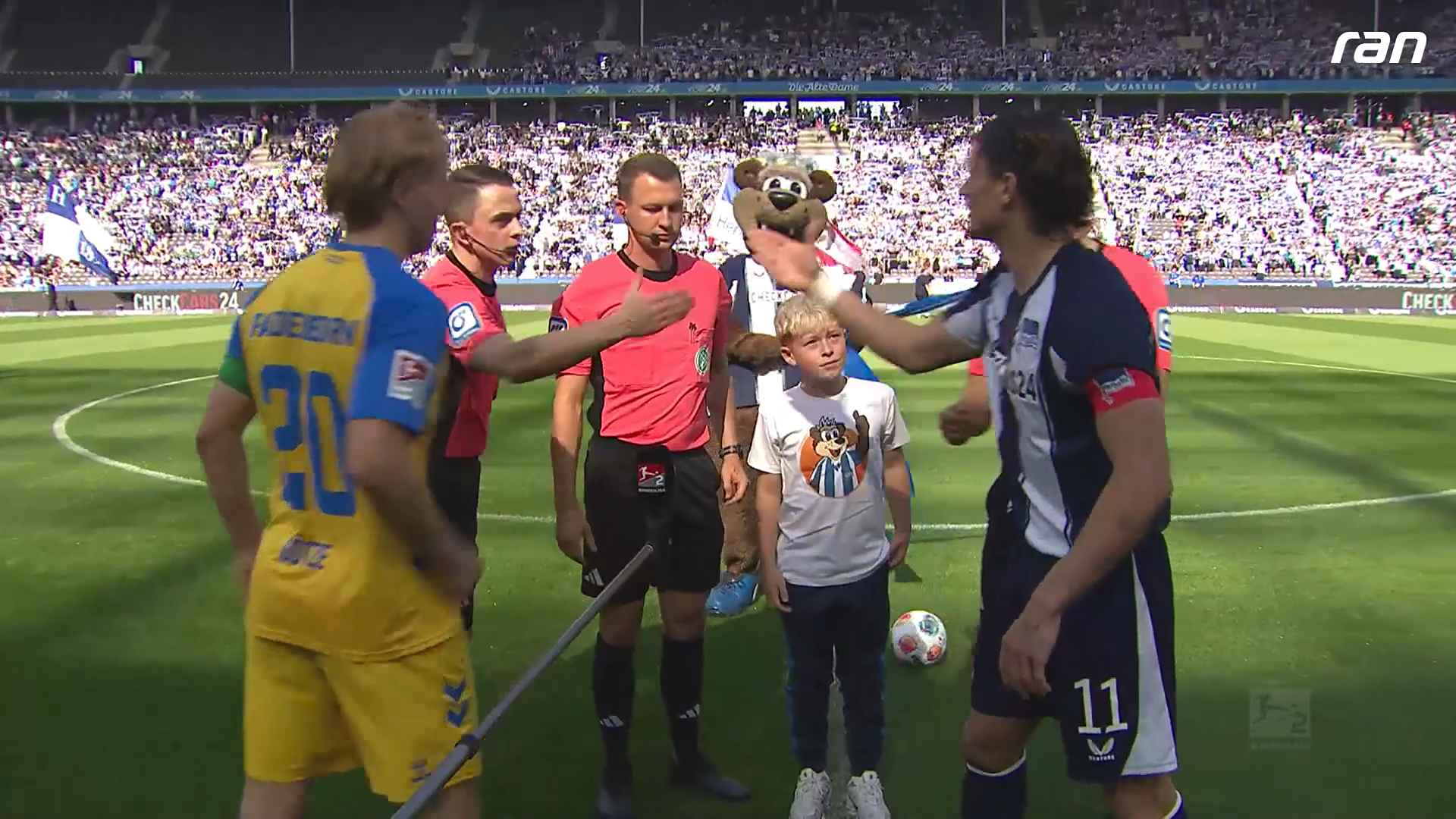 SportFabian Reese vergisst nach der Platzwahl das Einklatschen mit dem Einlaufkind. Nun sorgt der Kapitän für eine besondere Einladung.