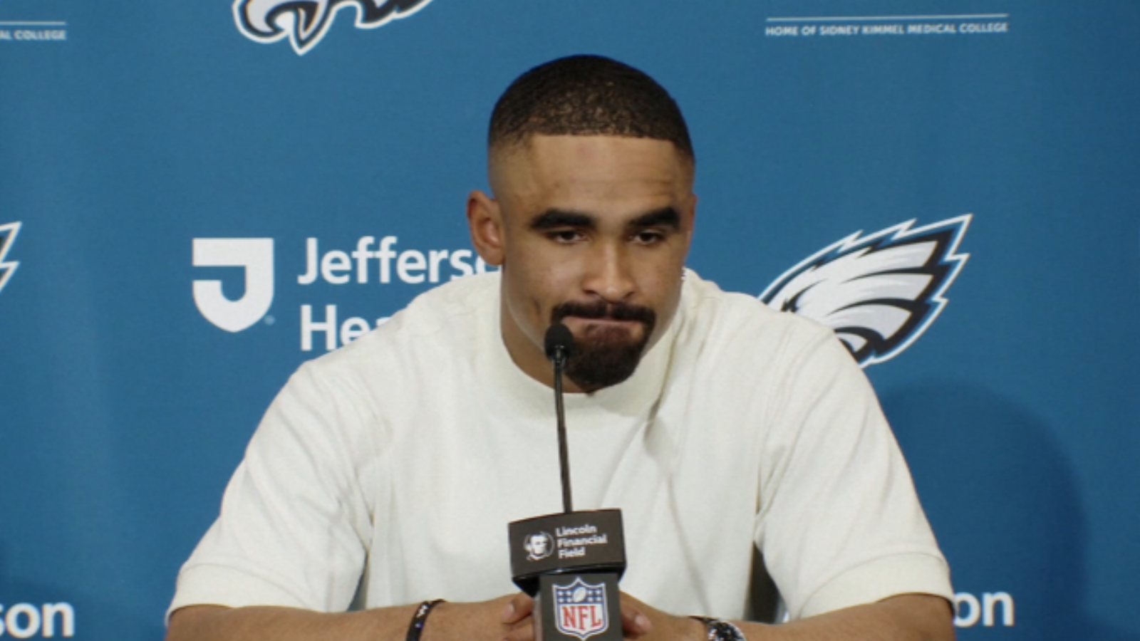 Jalen Hurts, Quarterback der Philadelphia Eagles, appelliert nach der Niederlage seiner Mannschaft gegen die Chicago Bears im Black Friday Game der NFL an seine Teamkollegen. Head Coach Nick Sirianni ist derweil ratlos.