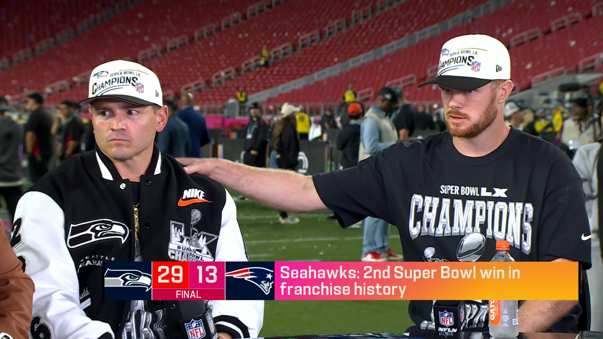SportSeahawks-Quarterback Sam Darnold wird emotional nach dem gewonnenen Super Bowl gegen die New England Patriots.