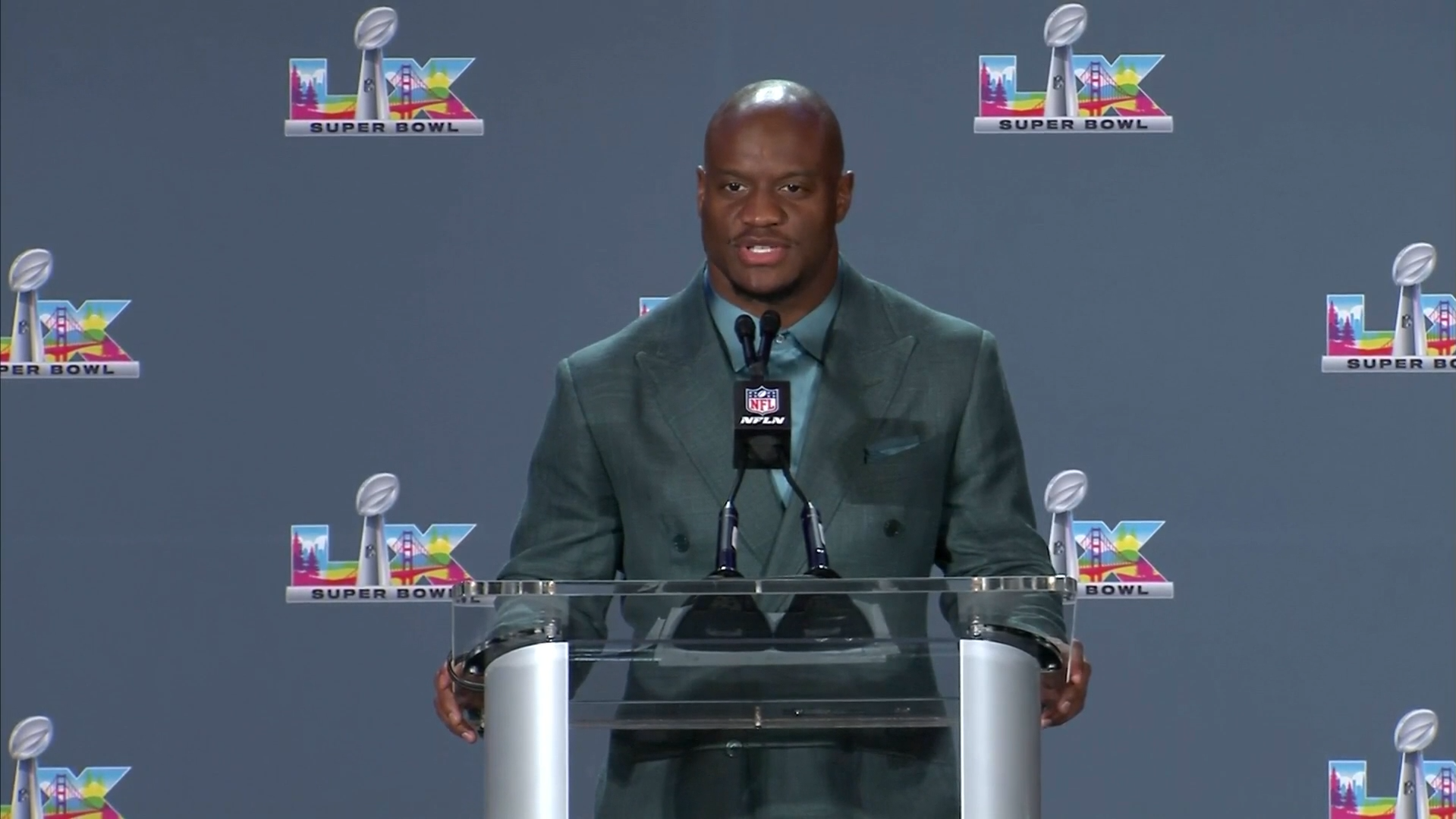 SportSuper-Bowl-MVP und Running Back der Seattle Seahawks Kenneth Walker spricht über das gewonnene Spiel gegen die New England Patriots.