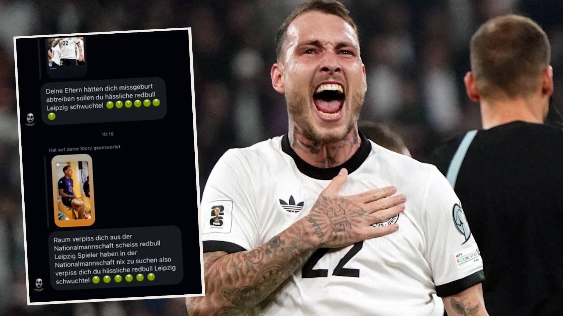 SportNationalspieler David Raum veröffentlicht auf Instagram extreme Hassnachrichten gegen ihn. Seine Reaktion ist genial.
