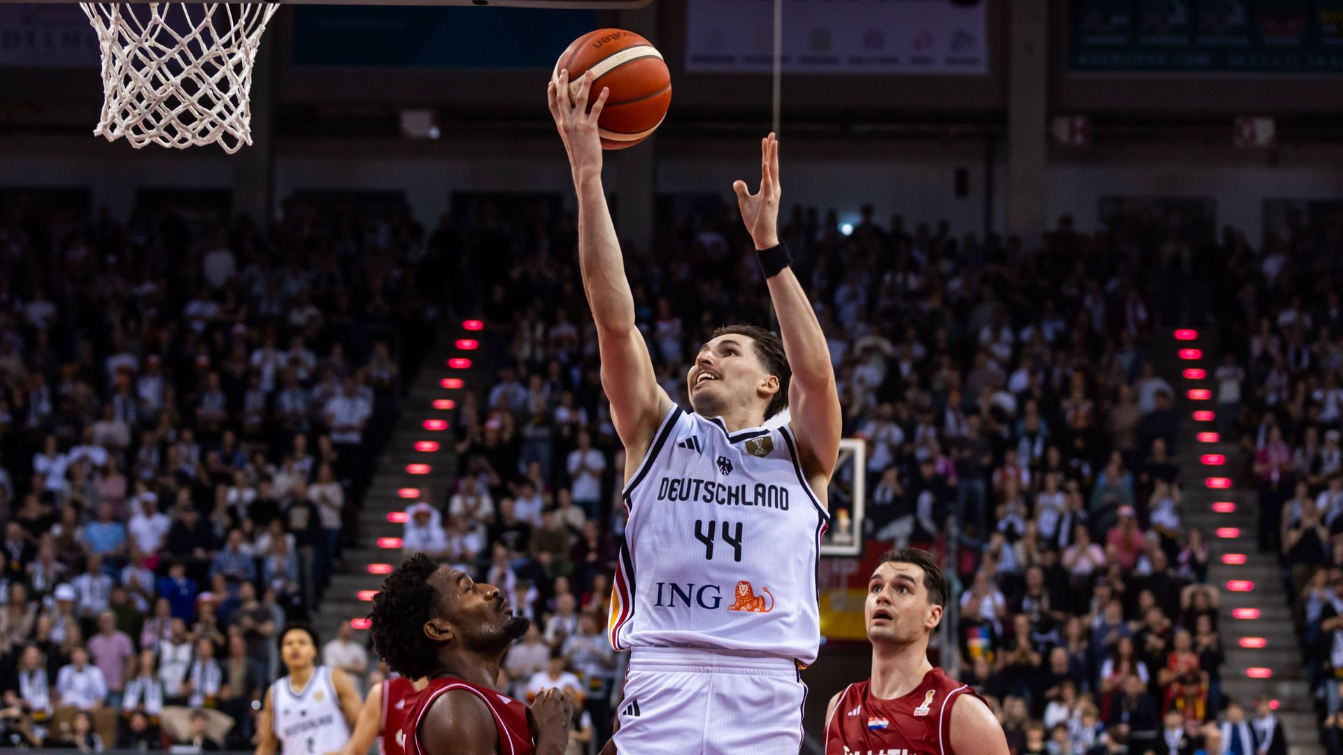 Mit einem Dreier 63 Sekunden vor dem Ende bringt David Krämer Deutschland zurück ins Spiel. Sein Treffer zum 77:77 ermöglicht den Weg in die Verlängerung. Dort sichert sich das Team mit 91:89 einen Sieg in der WM-Qualifikation.