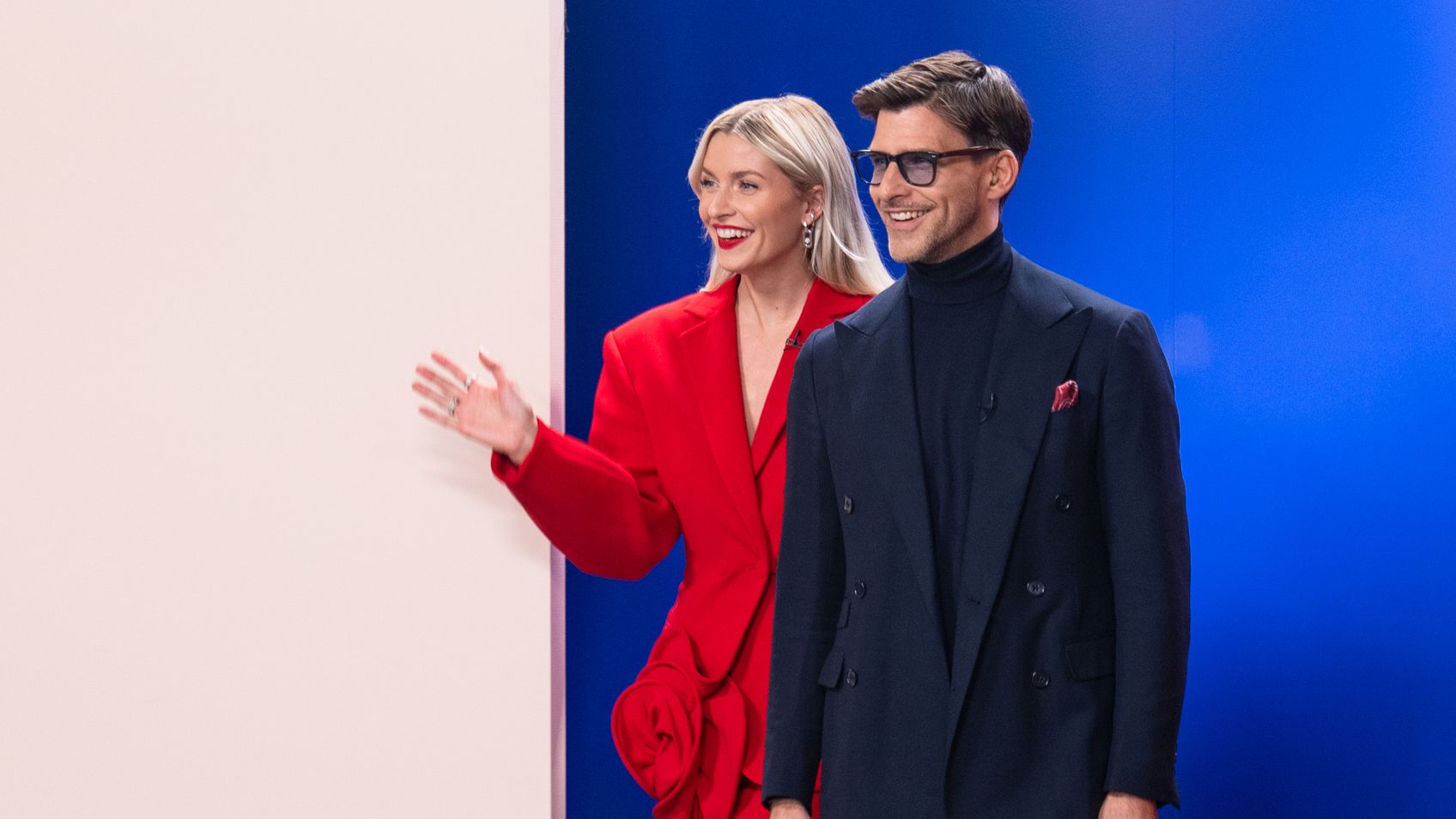 Lena Gercke und Johannes Huebel überraschen die Kandidaten als Gastjuroren und bereiten sie auf den schwierigen Laufsteg mit Stufen und Nebel vor. Die Models saugen das Wissen der Profis auf.