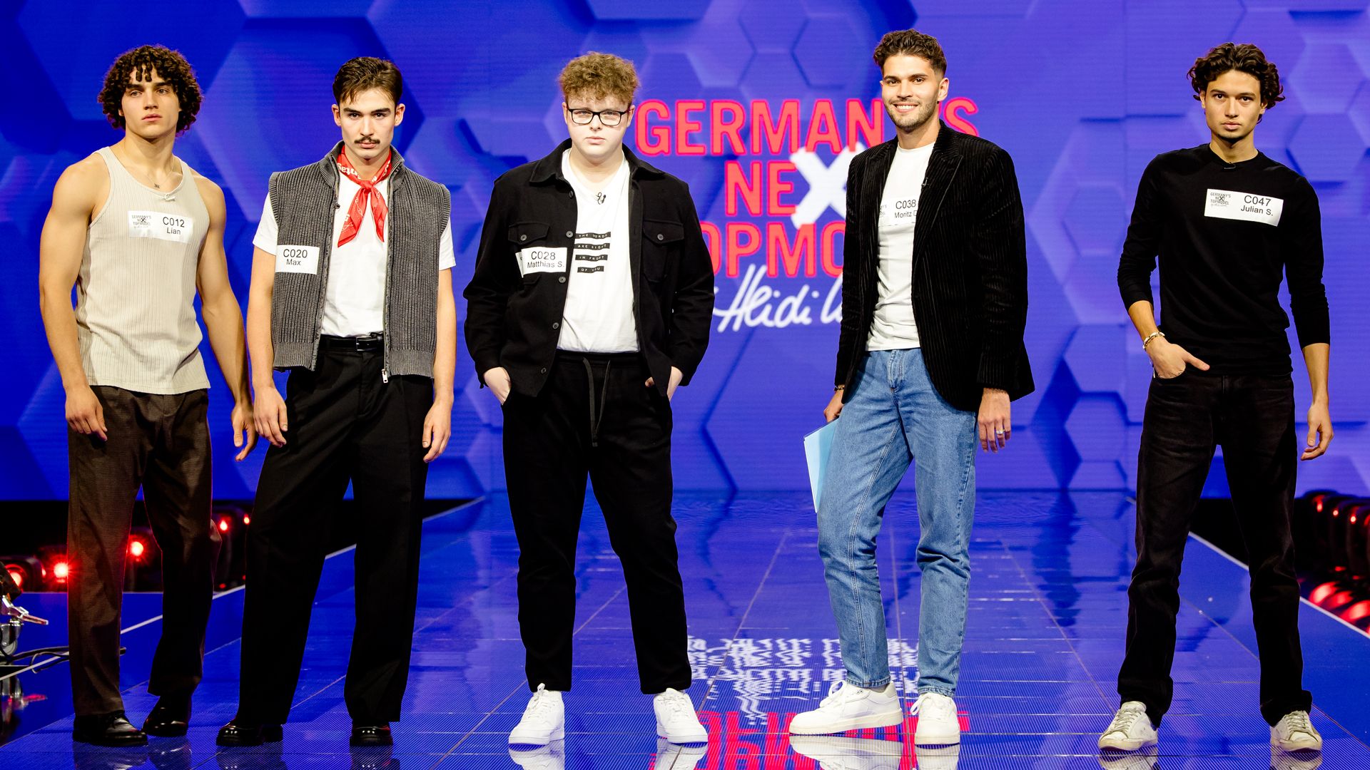 Gleich zu Beginn betritt Lian selbstbewusst den Laufsteg. Doch die Konkurrenz schläft nicht: Auch Kevin will Heidi Klum von sich überzeugen. Was sofort auffällt: Beide tragen eine wilde Lockenmähne! Die "Curly Boys" sehen sich sofort als Rivalen
