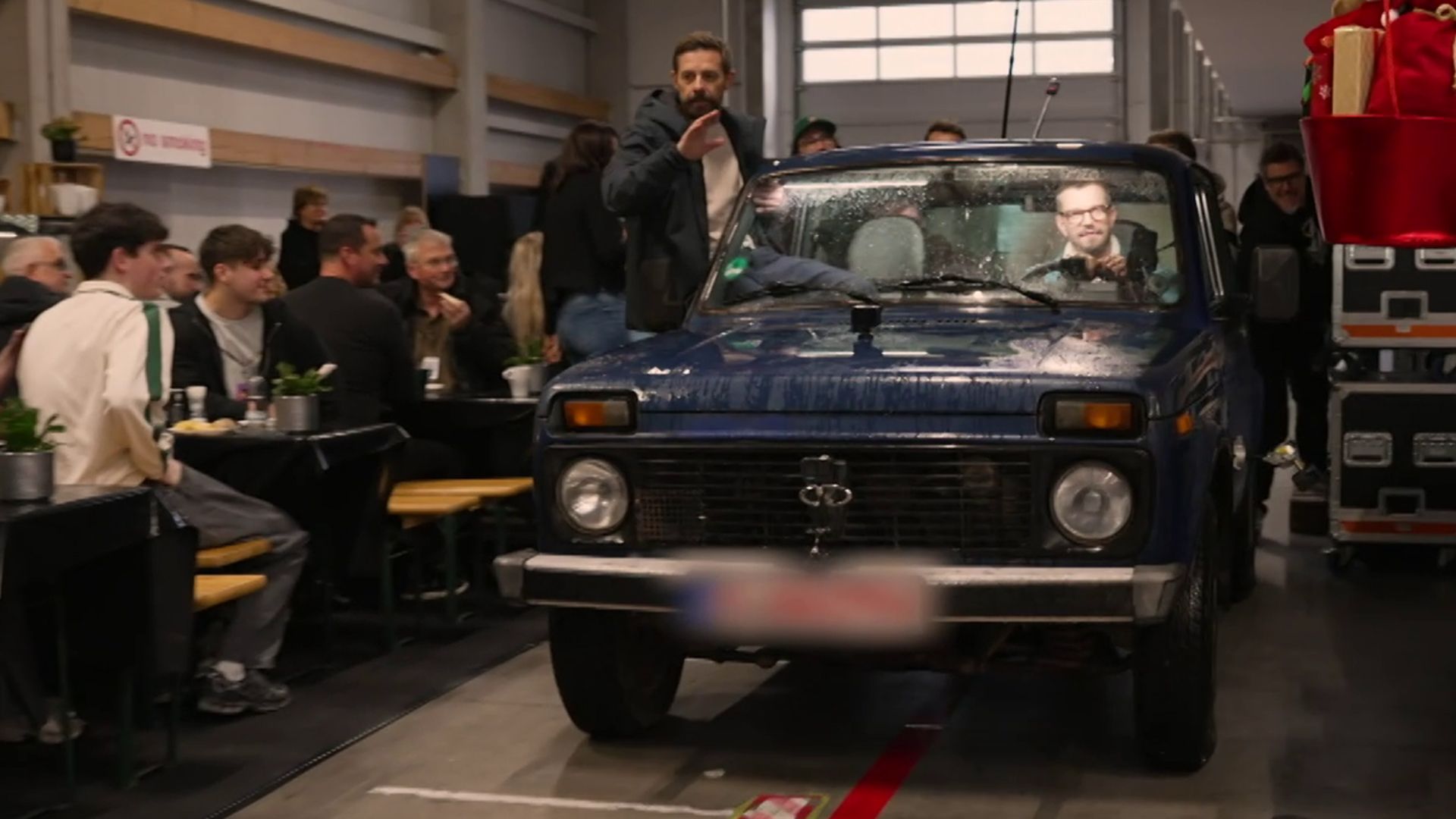 Mit dem Auto durch das Catering von "The Voice of Germany"